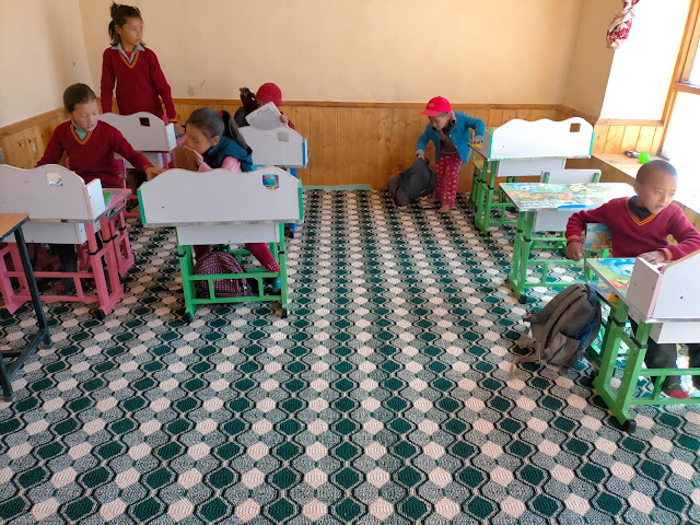 Dans la préparation de notre voyage au Zanskar, nous avons découvert avec joie et émotion les documentaires de Caroline Riegel; Semeuses de joie et Promesses de l’hiver. Quelle chance de vivre un week-end à la nonnerie de Tungri, d’assister à la puja, de rire et de partager. Gratitude infinie! Nous sommes heureux d’avoir pu fournir un tapis pour leur école et le lieu de rassemblement.
