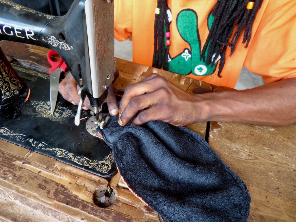 Dans le village, les femmes n’ont pas accès à des serviettes hygiéniques. Elles utilisent des morceaux de tissu qui ne sont pas très efficaces et propices aux infections. Nous avons donc développé un projet de serviettes lavables. Le tissu absorbant en bambou a été commandé depuis la Suisse et importé dans nos bagages. Les serviettes ont été cousues sur place par les couturiers du village. Merci à Cdada Créations qui a bénévolement mis au point un patron adapté aux machines à coudre locales, sans électricité ni point zigzag.